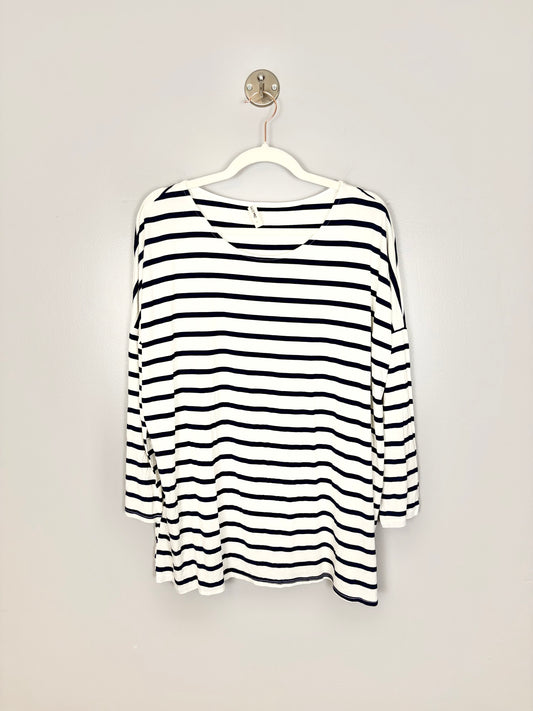 L - Hello Miz Buttersoft Navy Stripe Long Sleeve Shirt