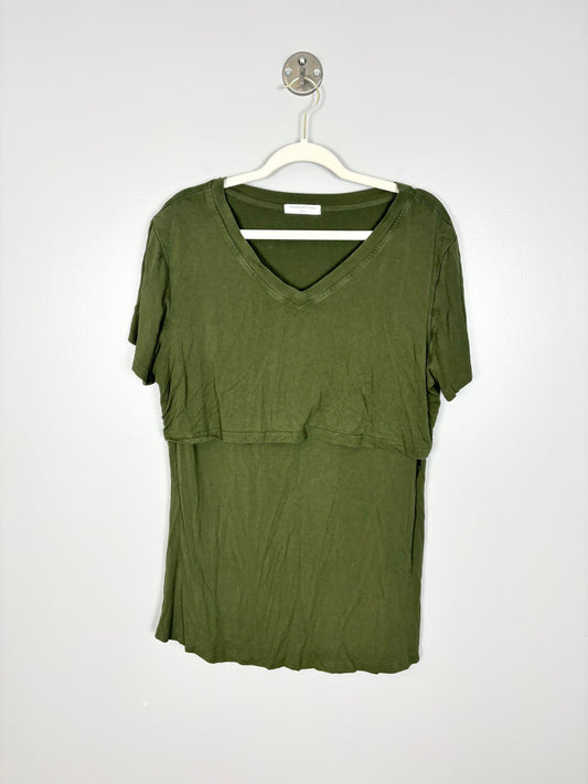 XXL - Olive Green Short Sleeve Nursing Shirt