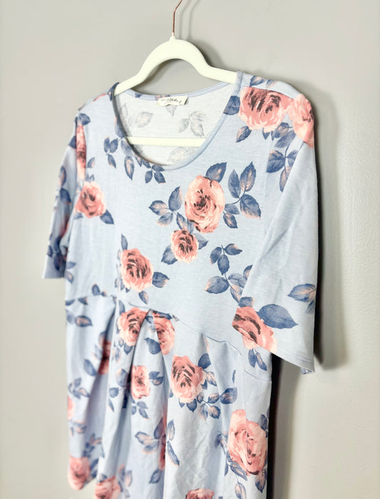 L - Hello Miz Blue Floral Shirt