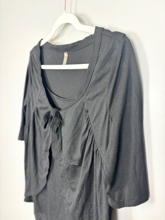 L - Thyme Black Front-Tie Nursing Shirt