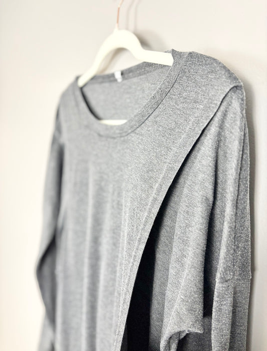 M - Asymmetrical Button Detail Grey Nursing Top
